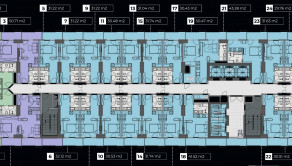 - Celkom 24 izieb na poschodí, z toho 19 štúdií, v rozmedzí od 29,76m2 až po 43,28 m2