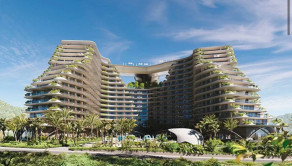Архитекторы подобрали исключительный дизайн экстерьера, органично вписанный в ландшафт. Помимо плавных линий и форм здания, это назначение выражается обширным ландшафтным дизайном и открытыми бассейнами комплекса.