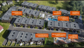 Projekt obsahuje bazén, vináreň, futbalové ihrisko, detské ihriská, preliezky, obchody, moderná architektúra, rodinné prostredie.