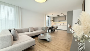 Byt je určený pre klientov, ktorí vyhľadávajú vysoký štandard bývania, veľkorysý priestor a nadštandardné technológie v kombinácii s výbornou dostupnosťou do centra mesta. Byt je úplne nový, zatiaľ nikým neobývaný, voľný ihneď. Prenajíma sa komplet zariadený podľa fotografií, s možnosťou dozariadenia interiéru podľa individuálnych požiadaviek klienta po dohode s majiteľom.