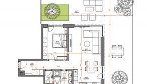 - terasa so zeleňou, automatickou závlahou a kvalitným exteriérovým nábytkom: 83,63 m²