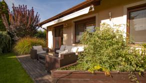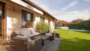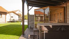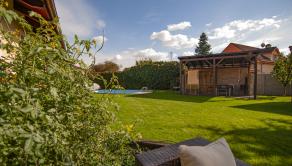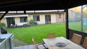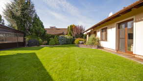 FinReal go ponúka na predaj rodinný dom- bungalov so samostatnou garážou, terasou, altánkom s letnou kuchynkou, altánkom so saunou a vírivkou, vonkajší prekrytý bazén v centre obce Slovenský Grob na ulici Obchodná.