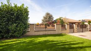Rodinný dom má vybudovaný plot, bránu, okrasnú záhradu a trávnaté plochy so závlahou.