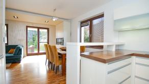 otvoreného priestoru dennej časti domu-obývacej izby s jedálňou a kuchyňou. Odtiaľ chodba