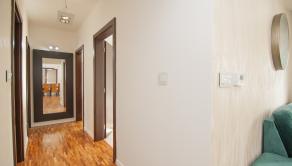 sprístupňuje kúpeľňu a tri izby. Z obývacej izby a zo spálne je východ do záhrady na terasu