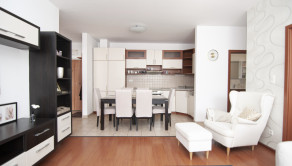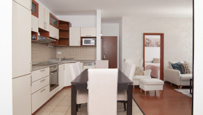 Kuchyňa je kompletne zariadená elektrospotrebičmi – chladnička s mrazničkou, sklokeramická doska, rúra, umývačka riadu, mikrovlnná rúra.