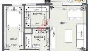 Dispozične byt pozostáva z predsiene, samostatnej izby 4 x 2 m, kúpeľne spojenej s toaletou (kúpeľňu je možné rekonštrukciou dispozične upraviť), priestrannej obývačky 6 x 4 m so vstupom na veľkú loggiu.