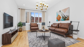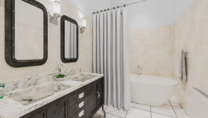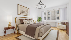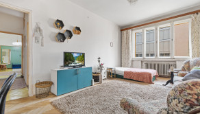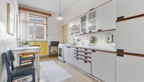 Byt sa predáva v pôvodom stave so zachovanými štylistickými prvkami, ako sú drevené parkety, interiérové dvere alebo vstavané skrine z orechového dreva. Použité vizualizácie sú ukážkou možného budúceho stavu.
