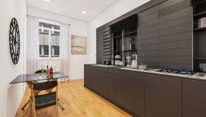 Nadštandardný priestor, vysoké stropy a veľkoformátové horizontálne okná vytvárajú v byte príjemnú atmosféru, podškrtnuté absolútne funkčnou dispozíciou.