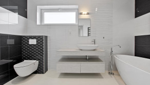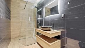 • Dubové podlahy, španielske obklady a dlažby, kúpeľňa na mieru od dizajnéra.