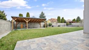 • Terasa, záhradný altánok (45 m²), závlahový systém Hunter, tráva-koberec, suchý potok a vyvýšené záhony