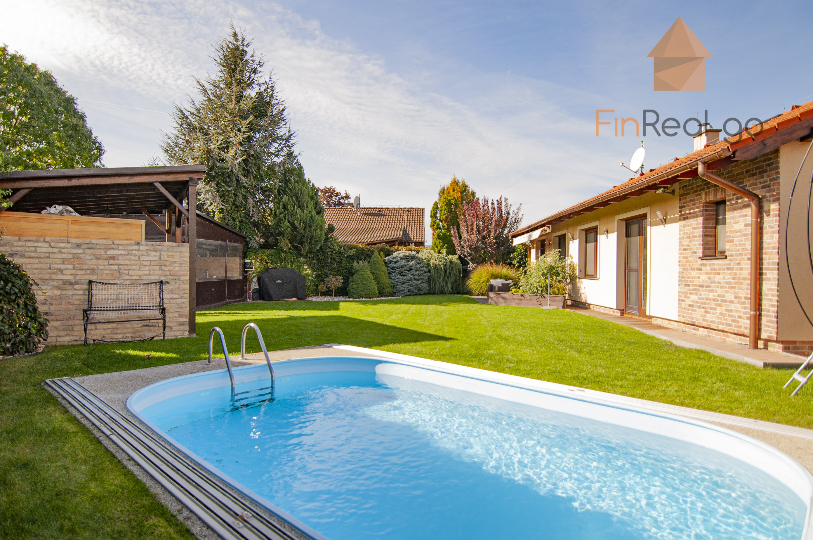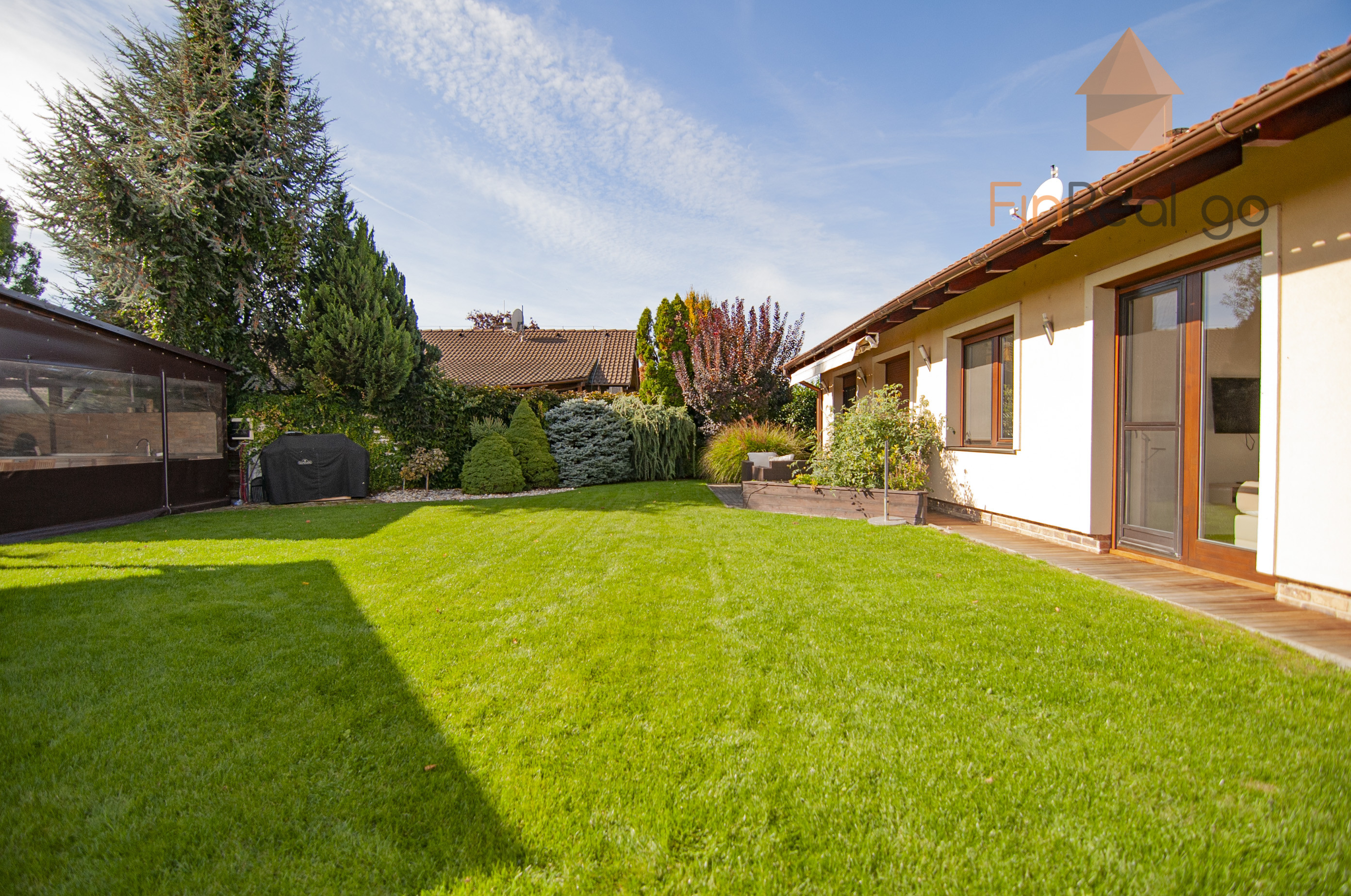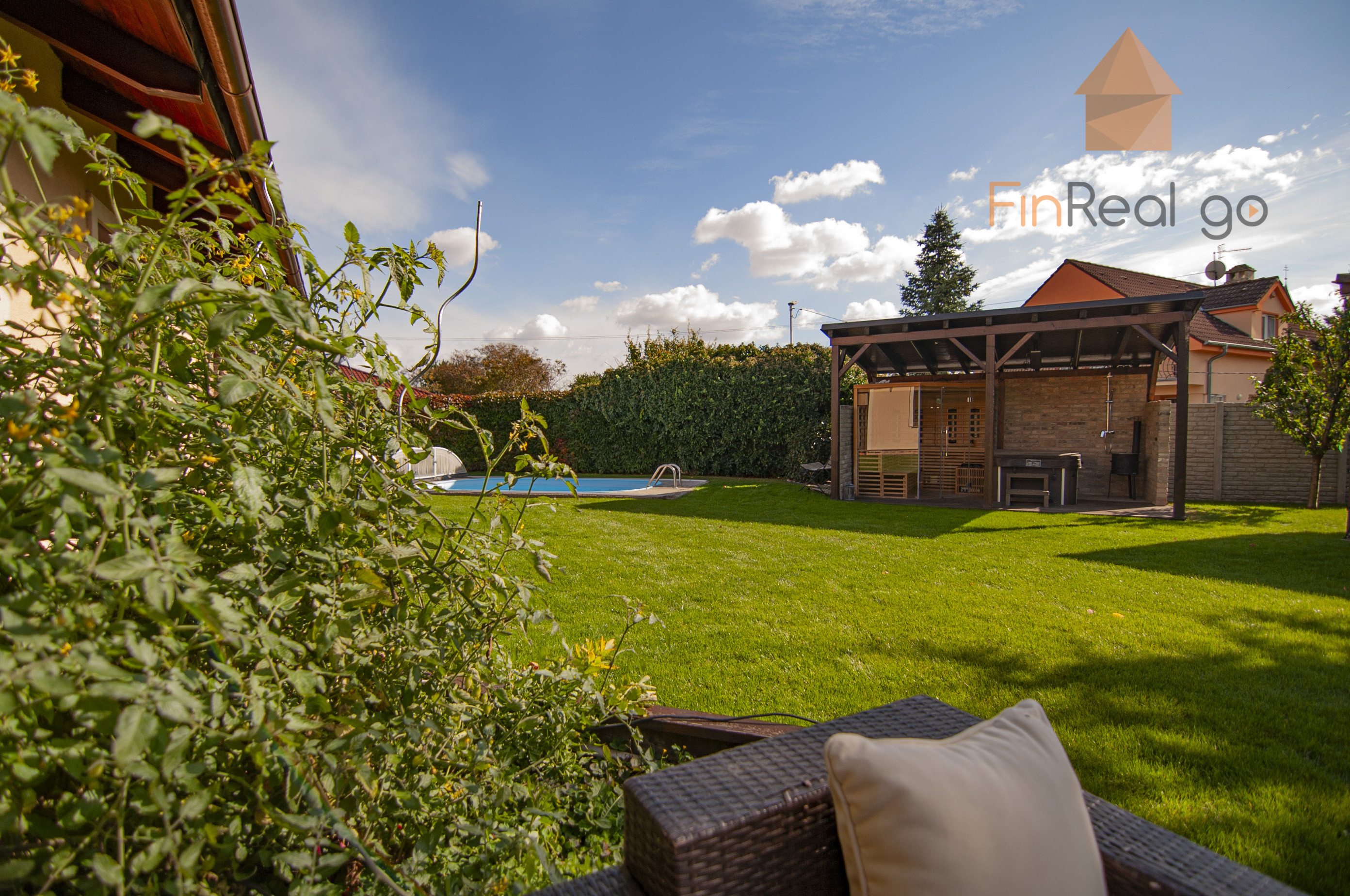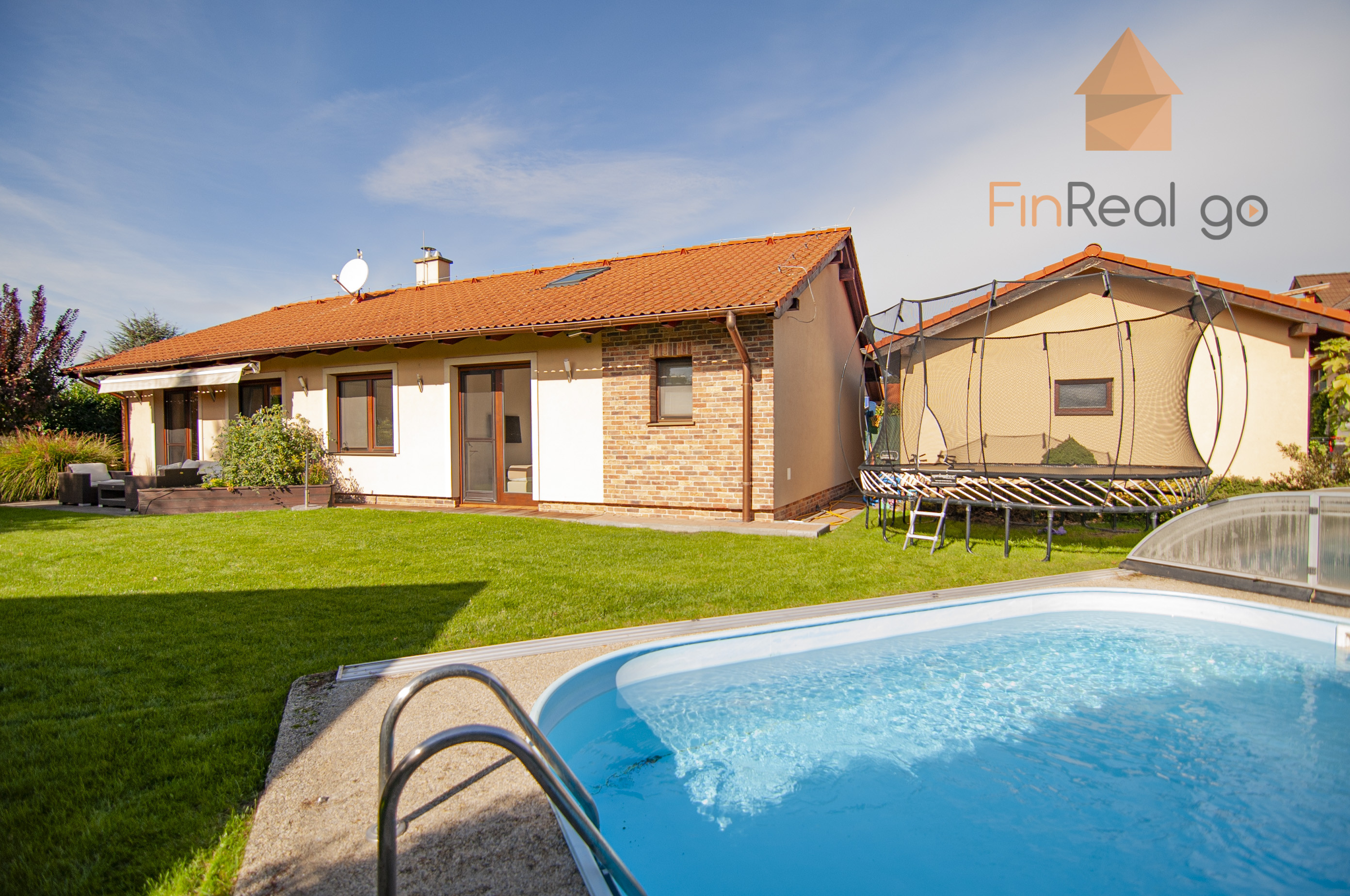 FinReal go ponúka na predaj rodinný dom- bungalov so samostatnou garážou, terasou, altánkom s letnou kuchynkou, altánkom so saunou a vírivkou, vonkajší prekrytý bazén v centre obce Slovenský Grob na ulici Obchodná.