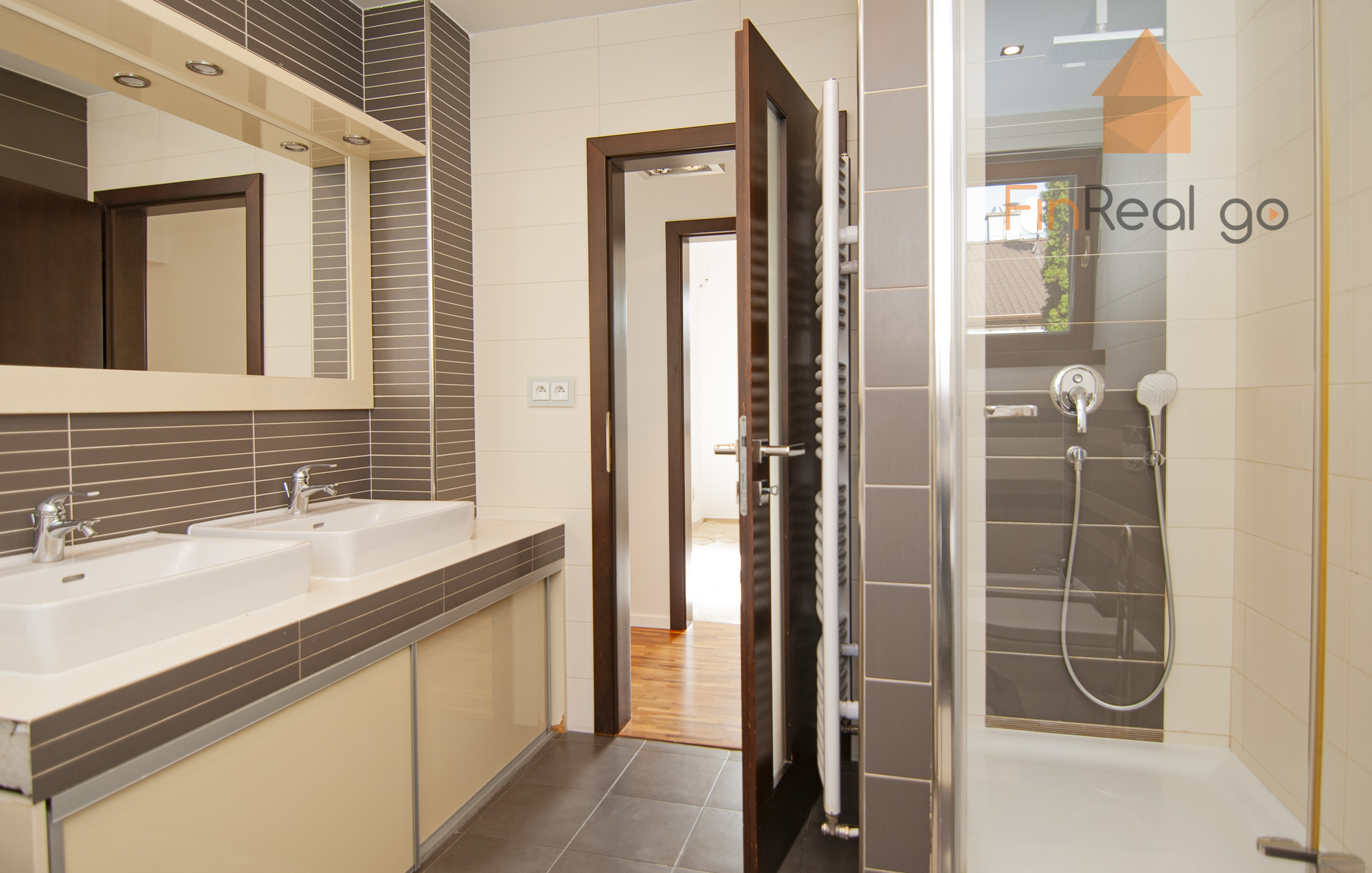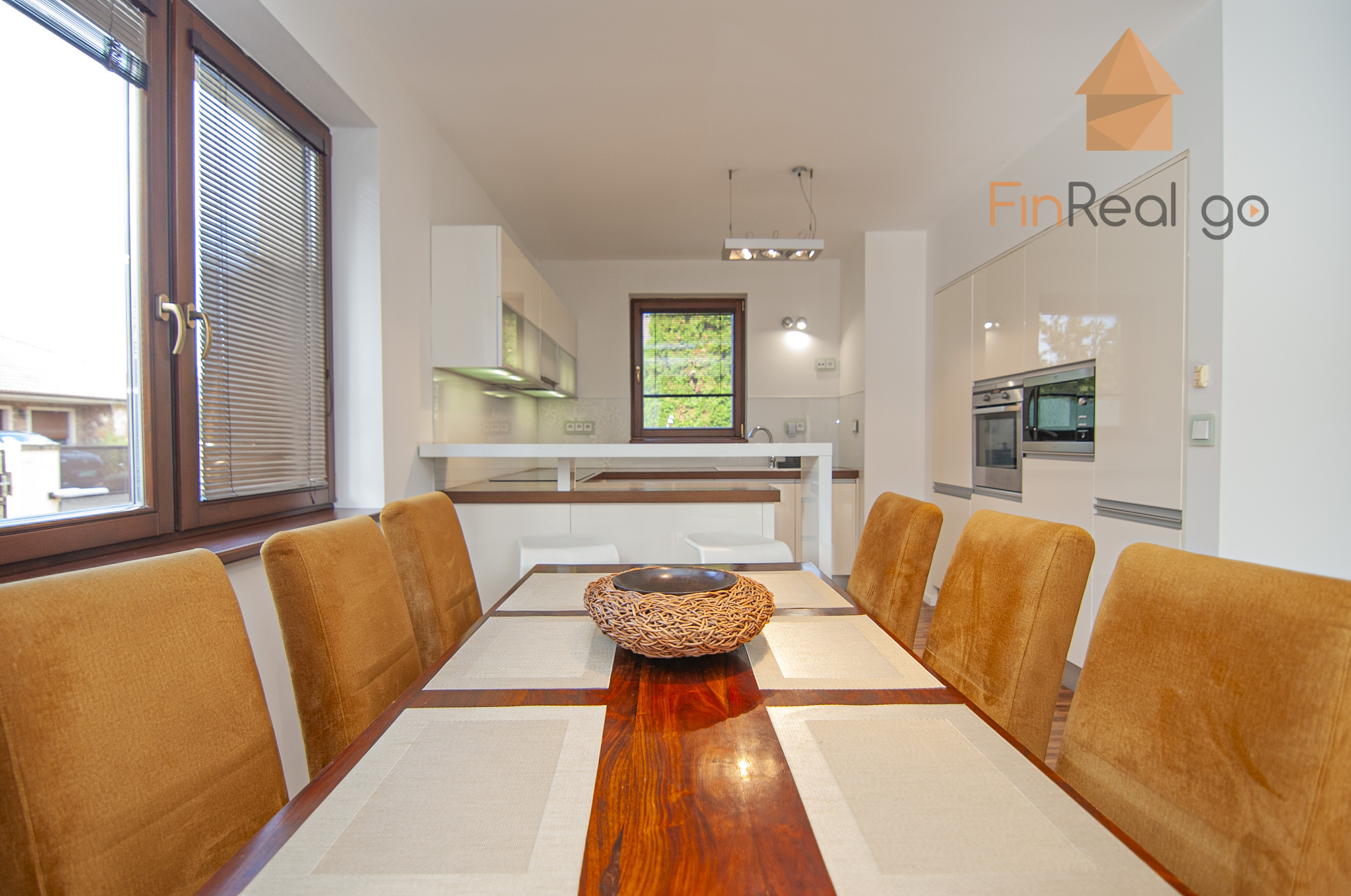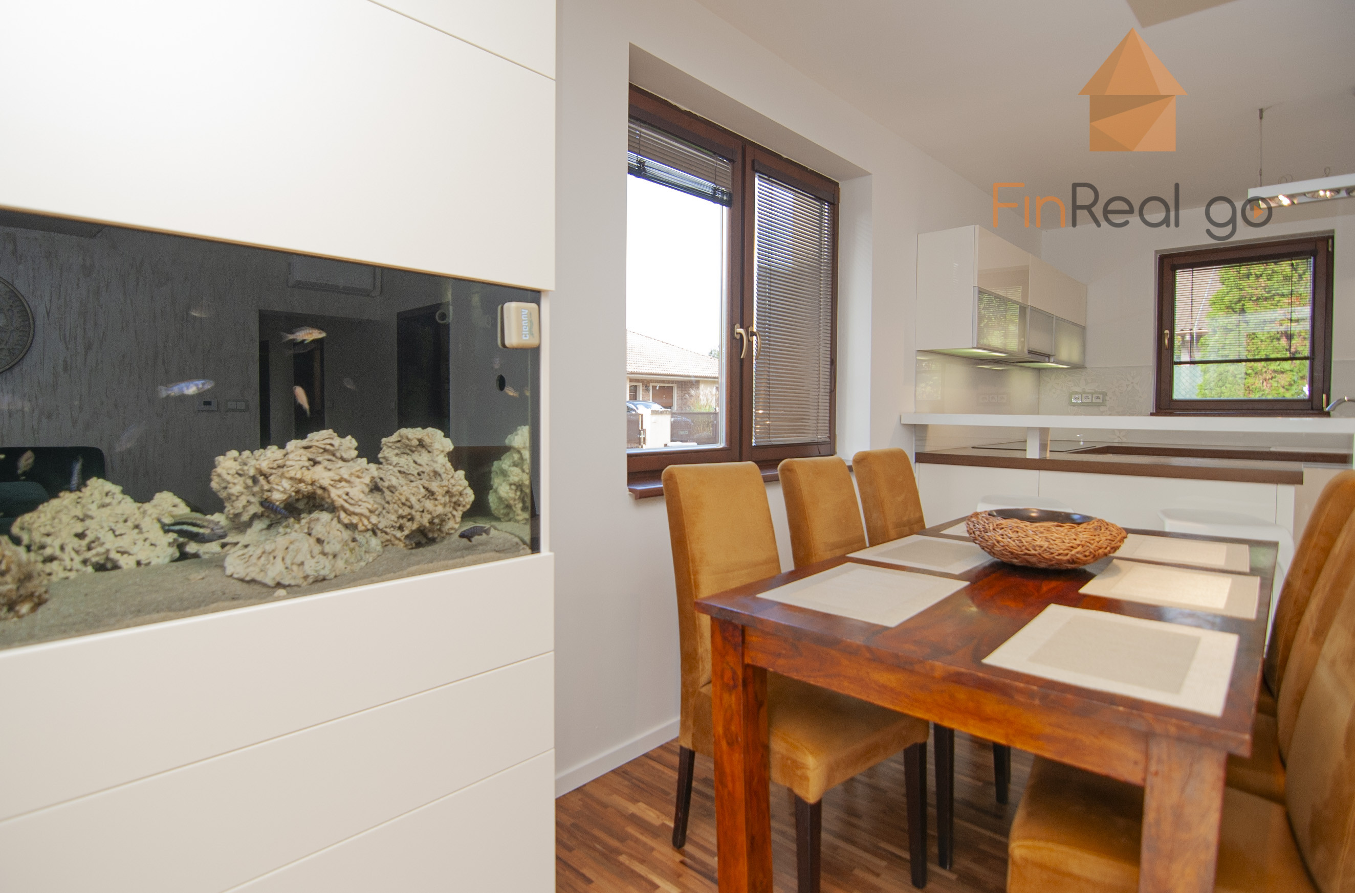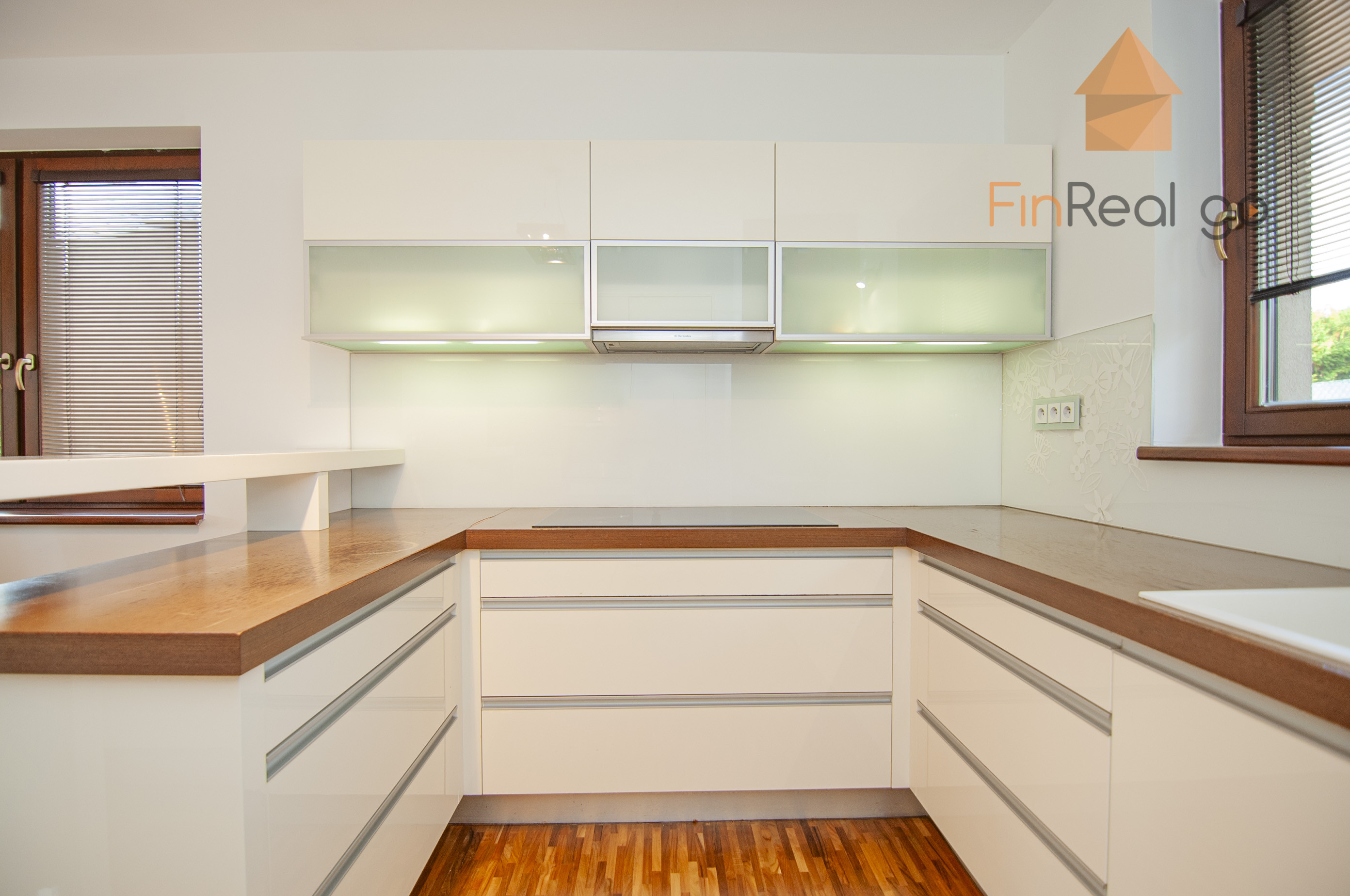 Kuchyňa - kuchynská linka nadštandardná na mieru v tvare U, drez kuchynský plastový s odkladacím priestorom, zabudovaný odpadkový kôš, sklokeramická varná doska zabudovaná, elektrická rúra zabudovaná, digestor, umývačka riadu zabudovaná, mikrovlnná rúra zabudovaná, chladnička a mraznička zabudovaná, súčasťou kuchynskej linky je barový pult obývacia izba - sadrokartónový podhľad so zabudovanými svietidlami. Kúpeľňa s WC - 2 umývadla keramické zabudované v nábytkovej skrinke, WC so zabudovanou nádržkou, bidet, vaňa plastová rohová obložená keramickým obkladom, sprchový kút (batérie podomietkové, plus sprchová hlavica), keramický obklad stien, rebríkový radiátor, zrkadlo zabudované, sadrokartónový podhľad so zabudovanými bodovými svietidlami zádverie. Plynový kotol Buderus a zásobník TÚV. Kúrenie v dome je podlahové teplovodné.