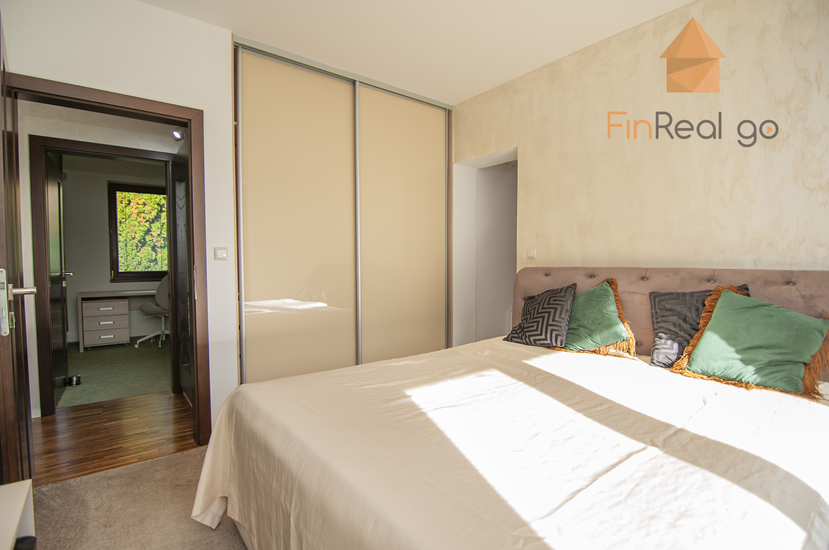 Vstavané skrine - v celom dome je nábytok vyhotovený na mieru, dve vstavané skrine v zádverí, vstavaná skriňa v každej izbe (3 kusy).